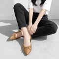 Classic ballet shoes with a mesh-like embossed material for an elegant and casual look. A pair of shoes that adult women would love to wear with their pointed and shallow cut. We have prepared a variety of colors that will make you want to have multiple pairs because you want to wear them every day.