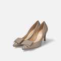 予約:2026SS:リボン付き ポインテッドトゥパンプス(m72027)グレージュ