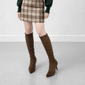 Square toe 7.5cm heel stretch long boots with surprisingly high stretch. These high sock-like boots fit snugly and make your legs look slender and long.