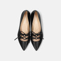 甲部分の細リボンとコード結びのレースアップが印象的なフラットシューズ。デイリーに使いやすいおしゃれな一足です。
